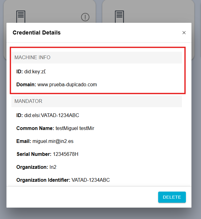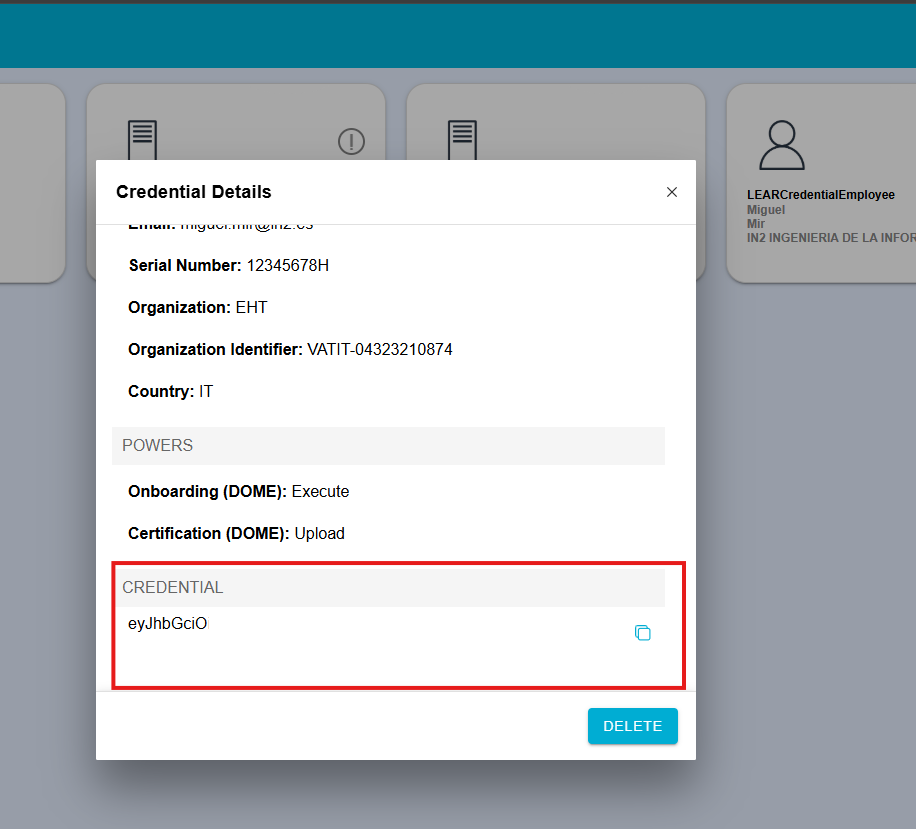 Image when we issued a new LEAR Credential Machine