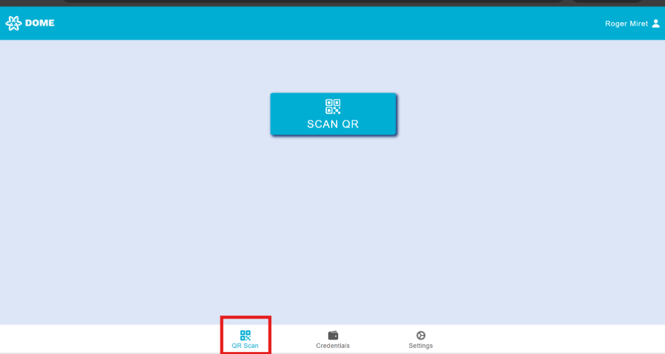 Go to the “QR Scan” tab (the app usually navigates there automatically after loggin in) and tap the “SCAN QR” button.