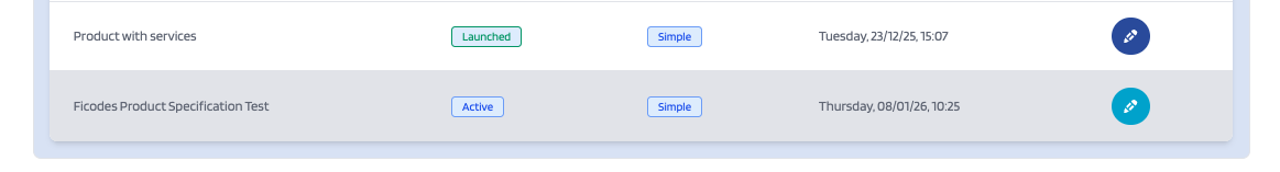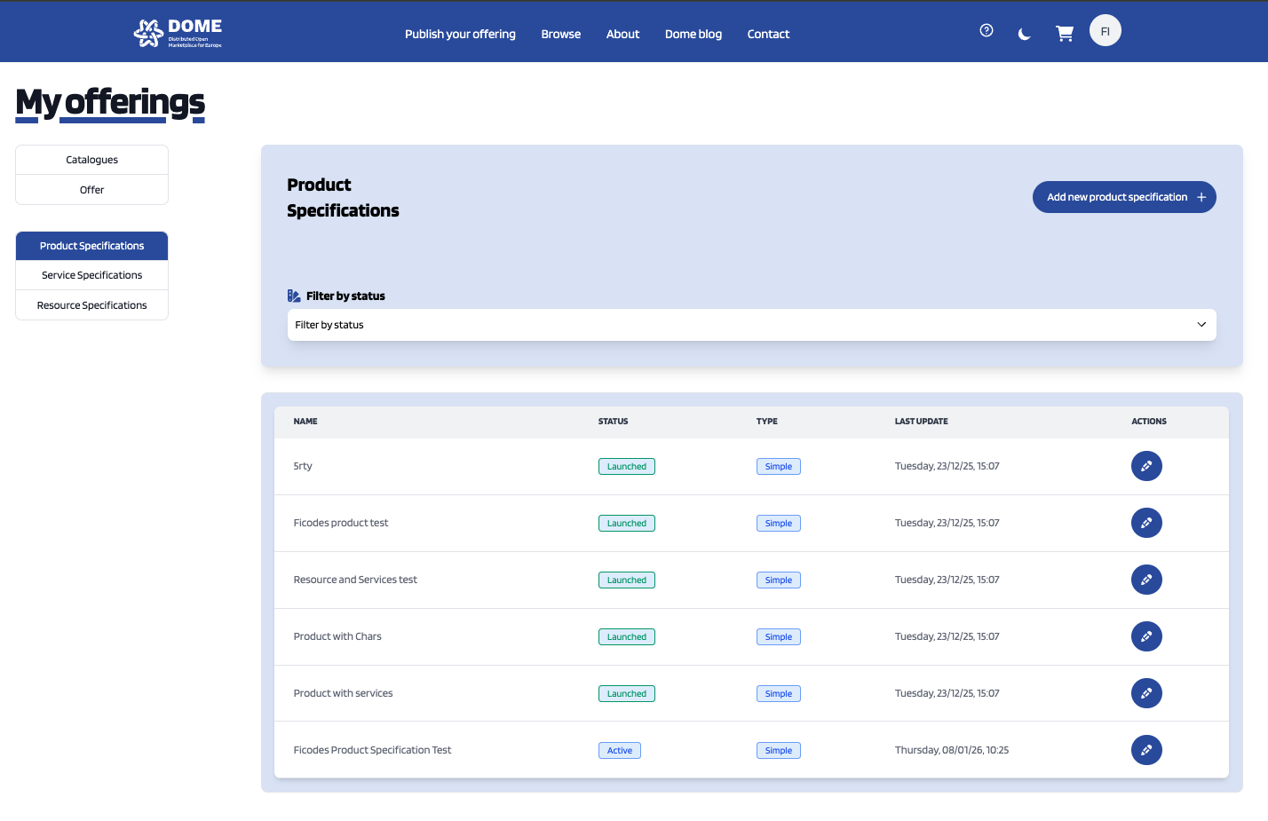 Providers can update their products. To do that click the Edit button next to the product specification to be updated.