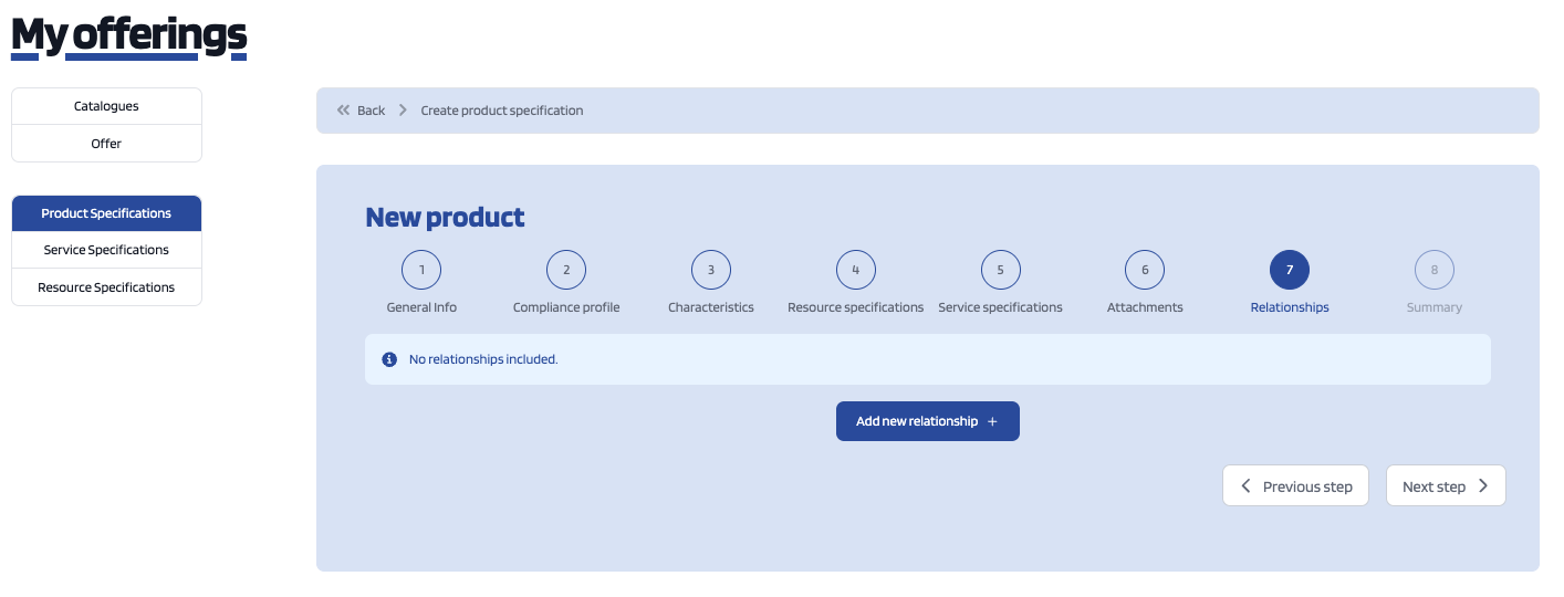 In the next step, you can specify relationships of the product you are creating with other of your product specs.