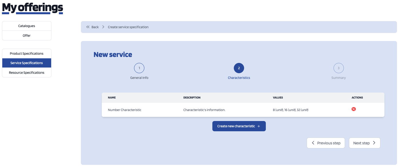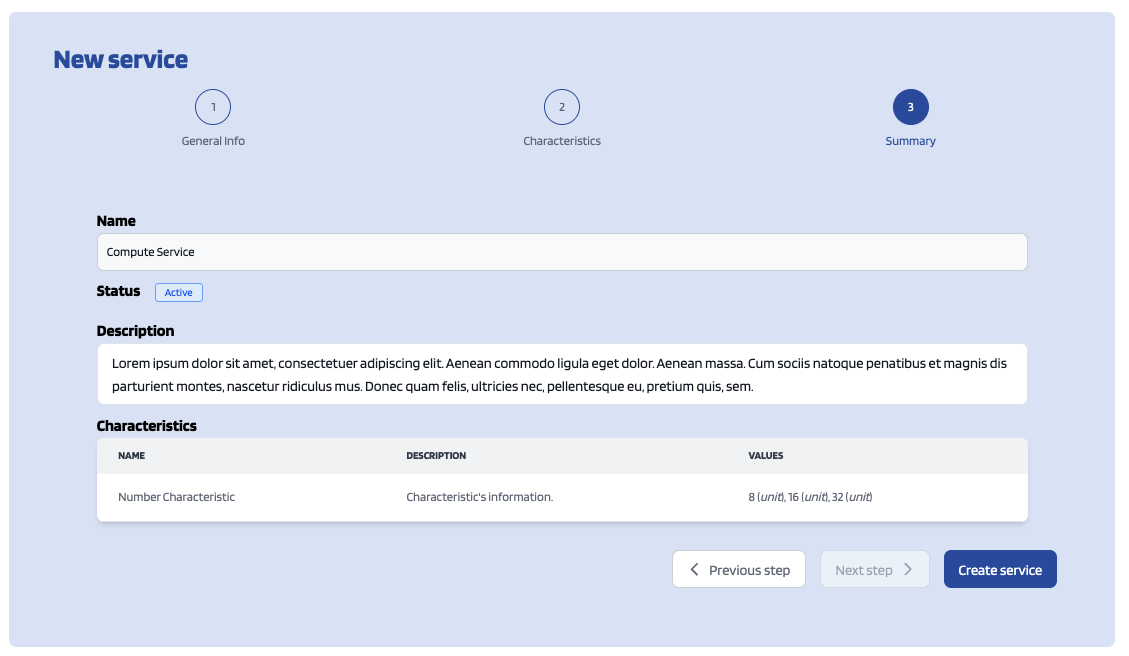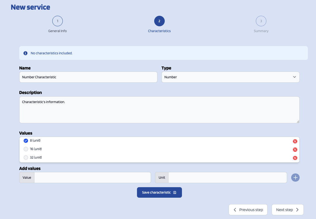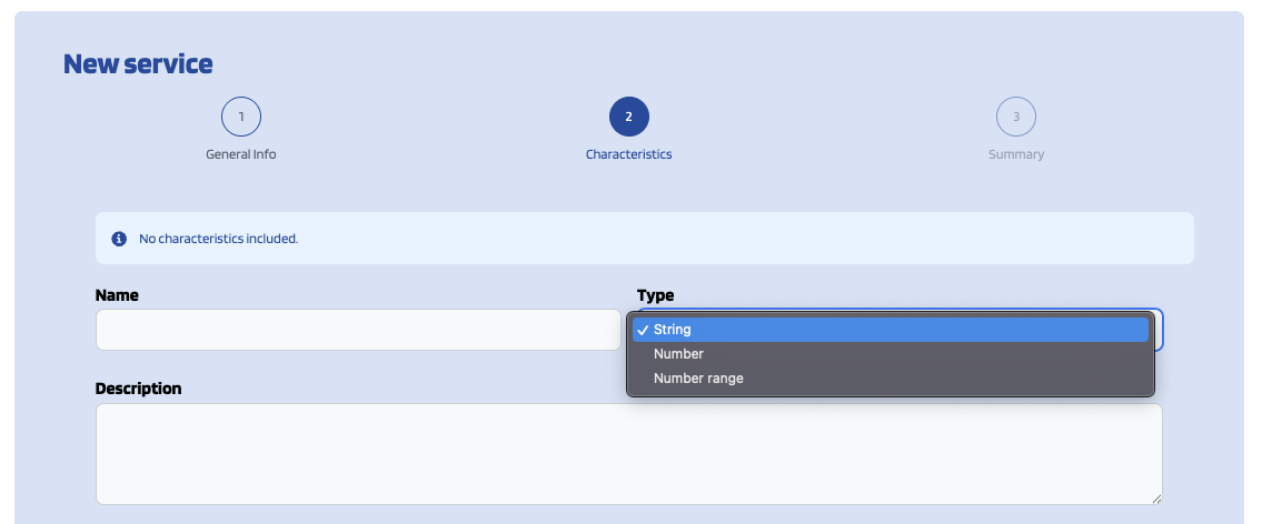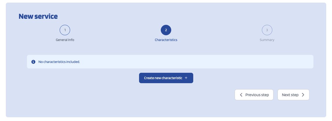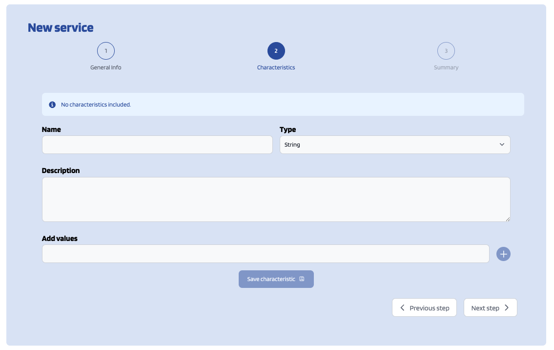 The second step is where you can (optionally) add characteristics related to the service.