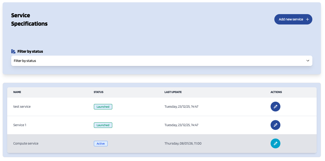 Providers can also update their services. To do that, click on the Edit button of the service to open the update view.