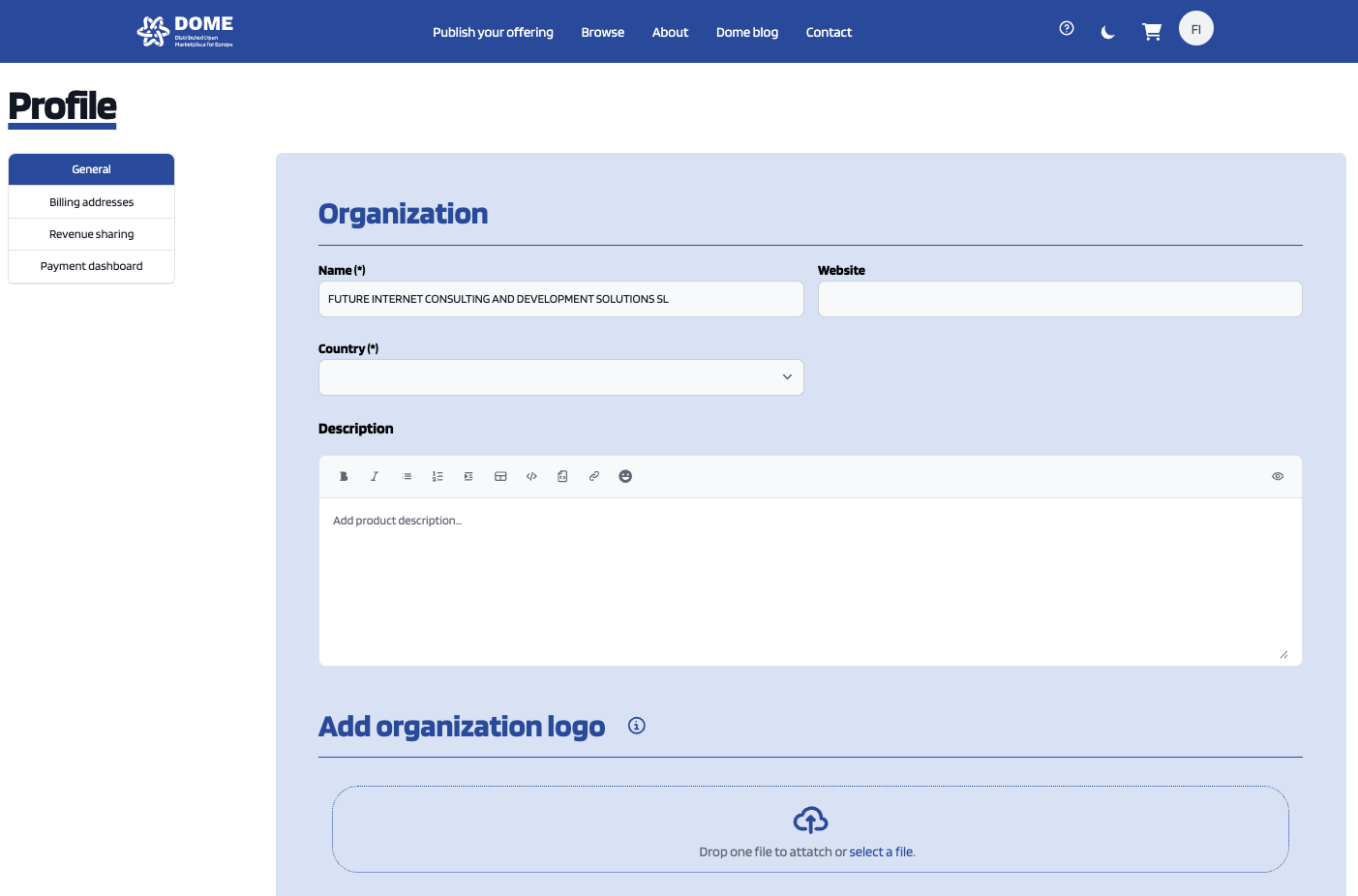 In this case, Organizations are allowed to change its name and add/update website, description, logo and contact information. This can be done by filling the fields shown above.