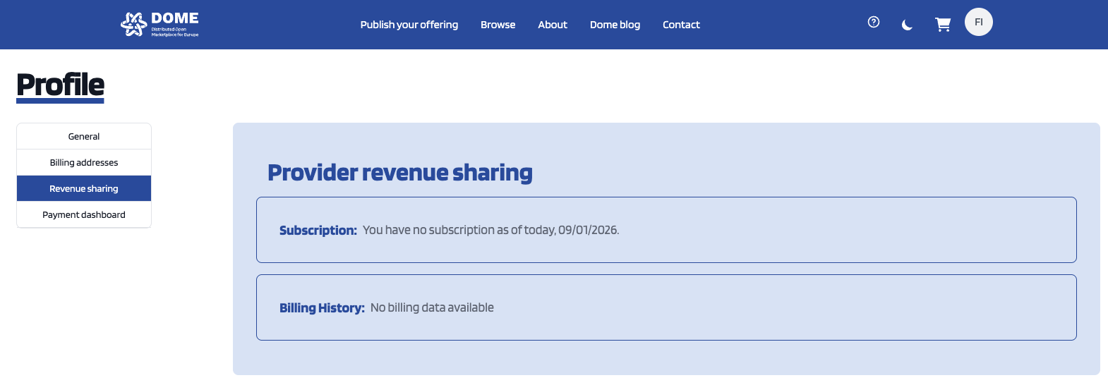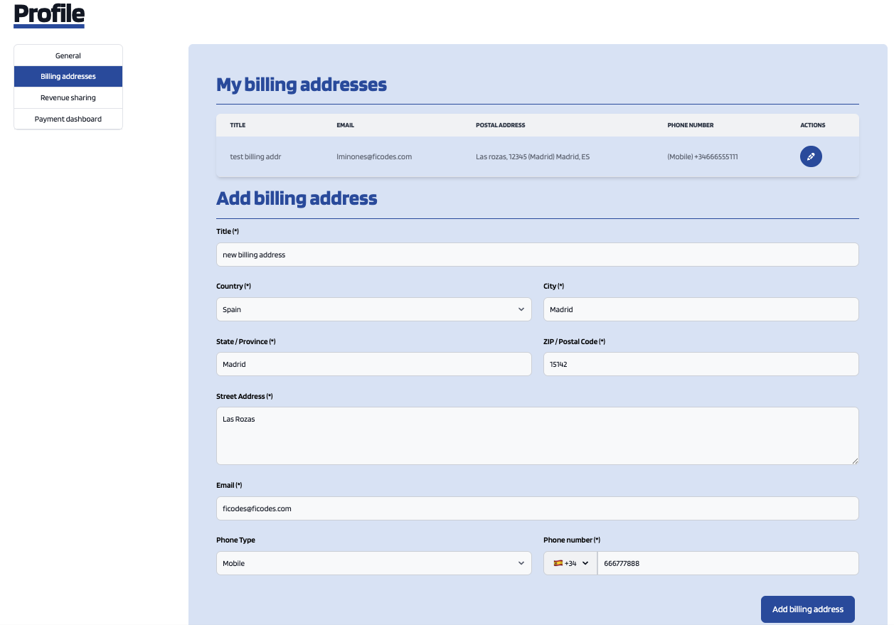 To create a billing address, fill in the fields and click on Add billing address.