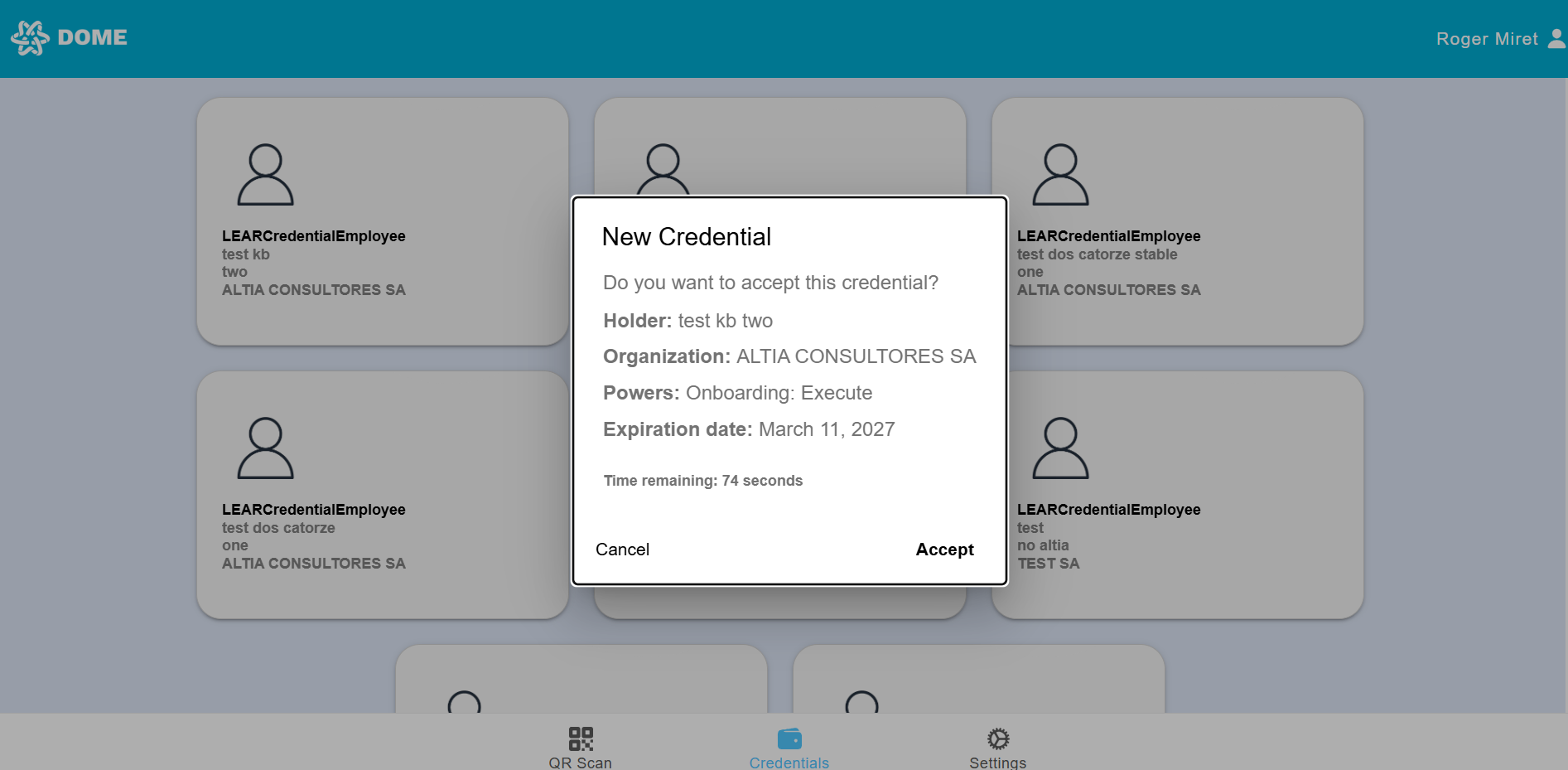 Before you can accept a Credential Offer, you must be registered in the DOME Digital Wallet.